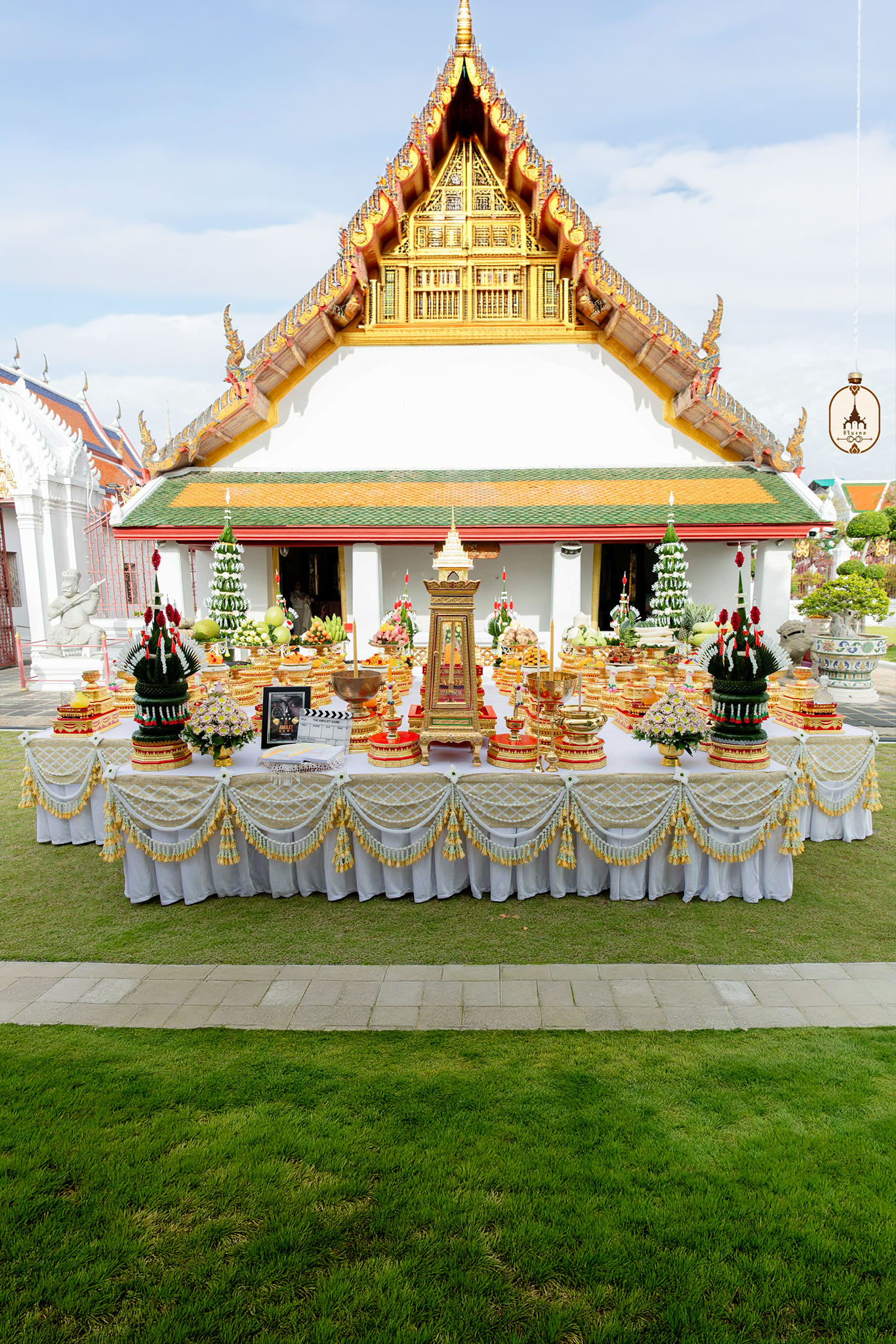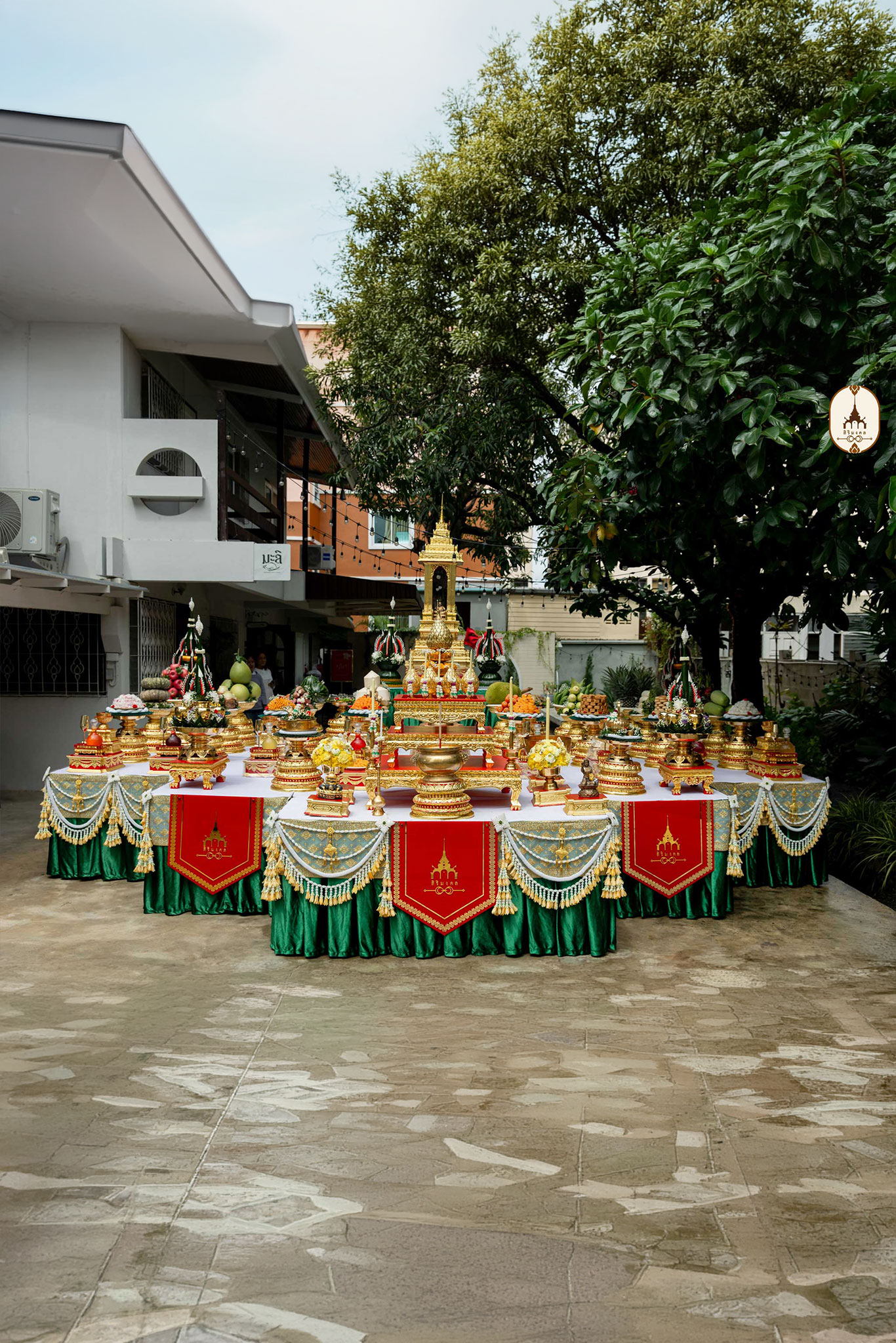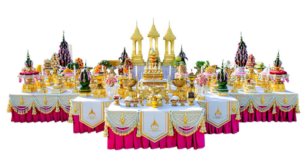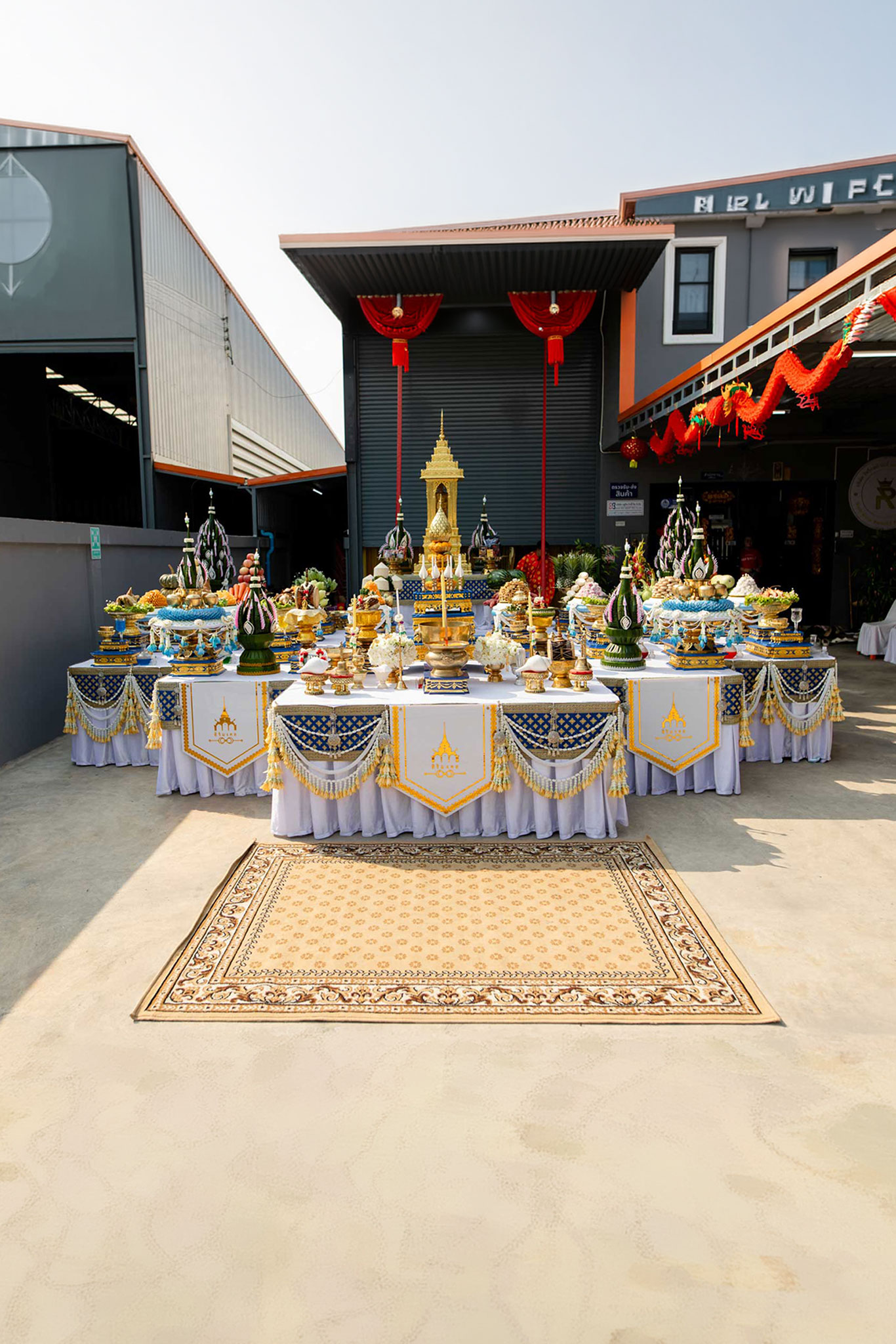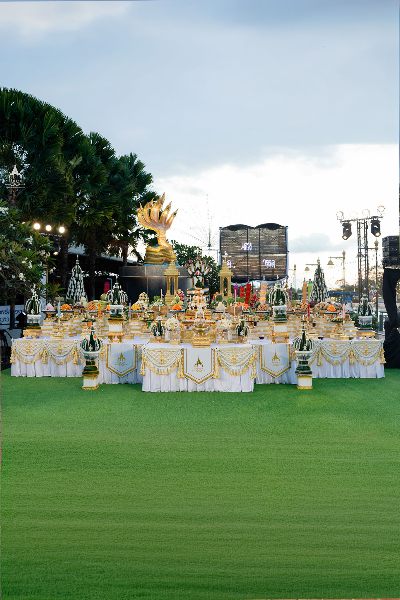 โต๊ะพิธีได้รับการออกแบบอย่างวิจิตร สง่างาม ผสานศิลป์ไทยร่วมสมัย ให้ภาพลักษณ์ที่ขลัง อลังการ และสมเกียรติสถานที่อย่างแท้จริง ฉะนั้น ลูกค้าจะได้รับความสะดวกสบายอย่างแท้จริง