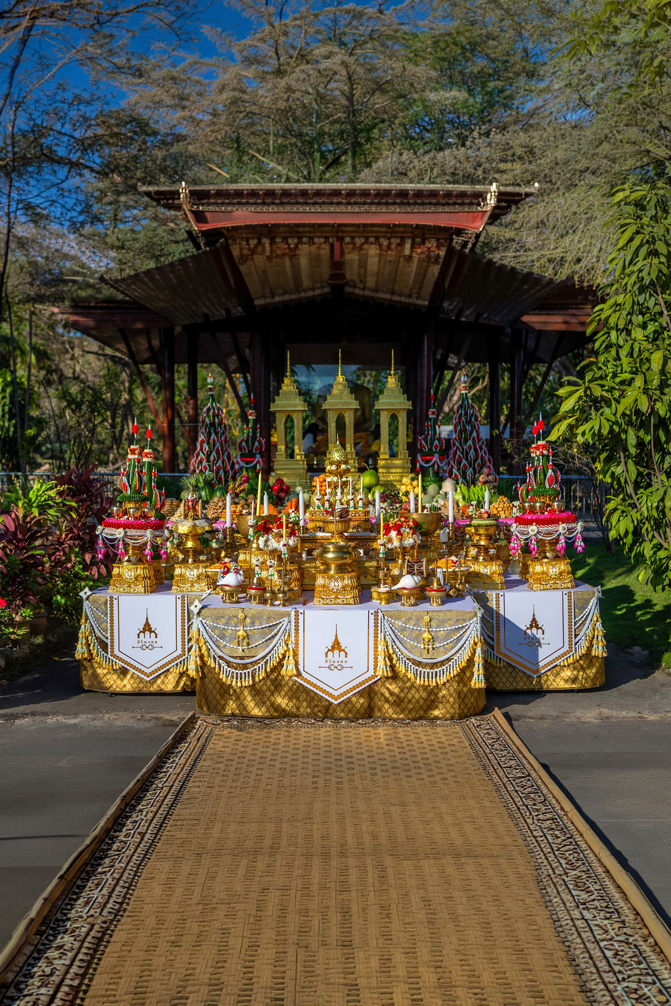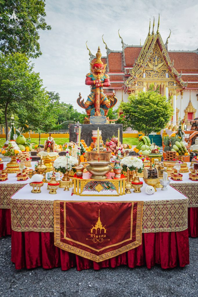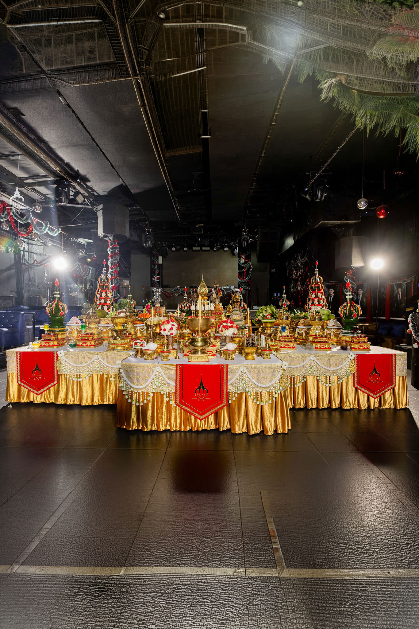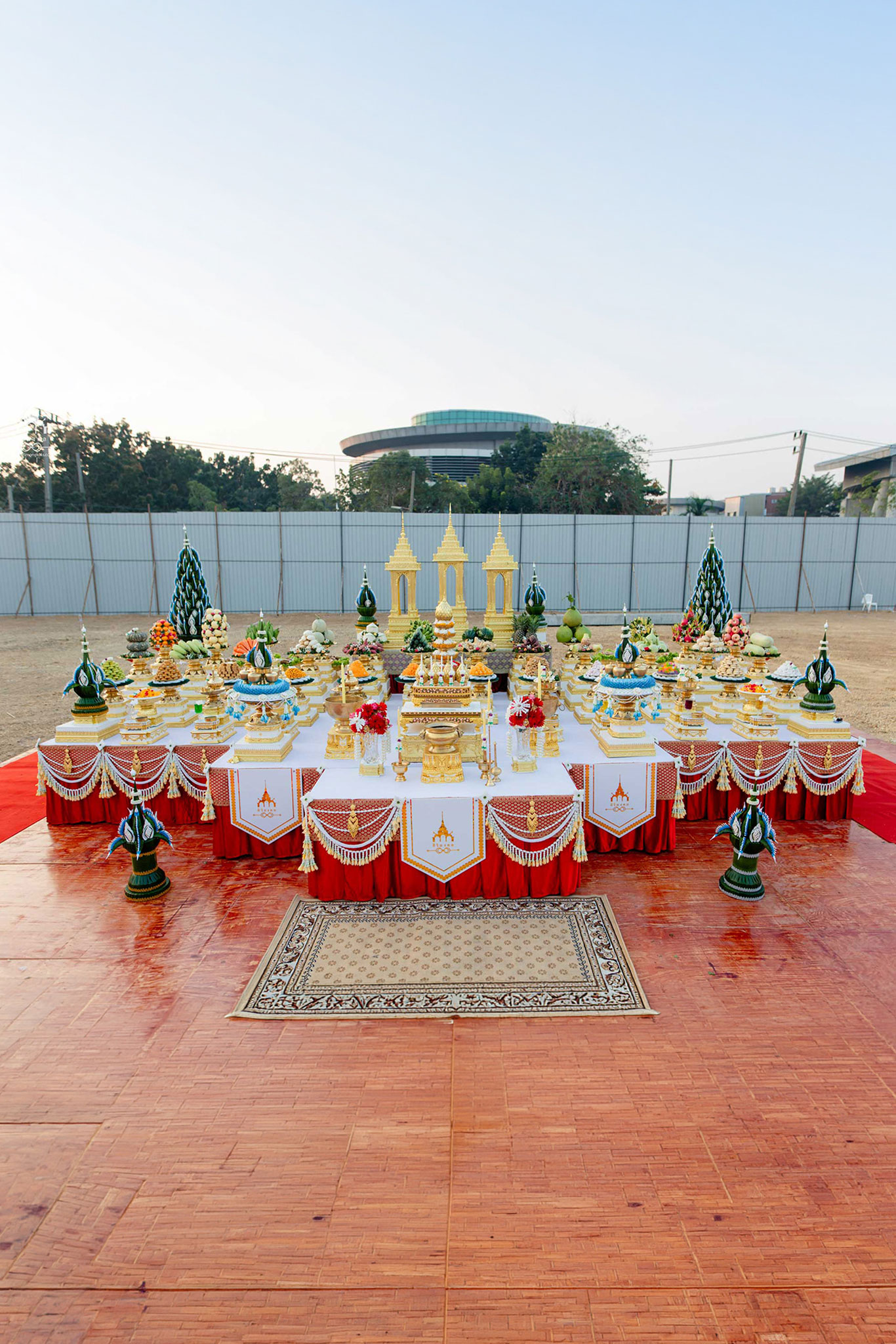 โต๊ะพิธีได้รับการออกแบบอย่างวิจิตร สง่างาม ผสานศิลป์ไทยร่วมสมัย ให้ภาพลักษณ์ที่ขลัง อลังการ และสมเกียรติสถานที่อย่างแท้จริง ฉะนั้น ลูกค้าจะได้รับความสะดวกสบายอย่างแท้จริง